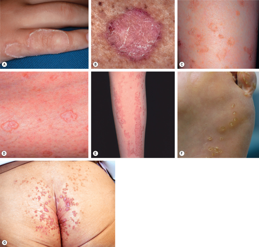 | Porokeratosis of Mibelli | Plaque that arises during infancy or childhood, usually on a distal extremity; often several cm in diameter |