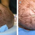 Nevus sebaceous presents at birth or within the first few months of life, with equal incidence in males and females. This hamartoma most commonly presents as a solitary papillomatous yellow-orange linear or oval plaque on the scalp or face. Lesions on the scalp are associated with alopecia. This lesion has been seen in association with the SCALP syndrome, which describes a constellation of sebaceous nevus with associated central nervous system malformations, aplasia cutis congenita, limbal dermoid, and pigmented nevi.