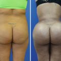 (a) Pre surgical images. There is a lack volume the medial ans superior gluteal area, poor definition on the lowerback and a trochanteric depression. (b) Post surgical images. There can be seen a smooth transition from the waist, hips and the upper tigh and an aquedate superior volume