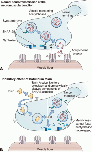 6,7 Ultimately, the docking, fusion, and release of acetylcholine vesicles are permanently disrupted inhibiting downstream muscular contraction (