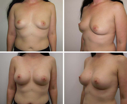 Fig. 1. (Above) Before breast augmentation. (Below) After implantation with round 295-g implants.