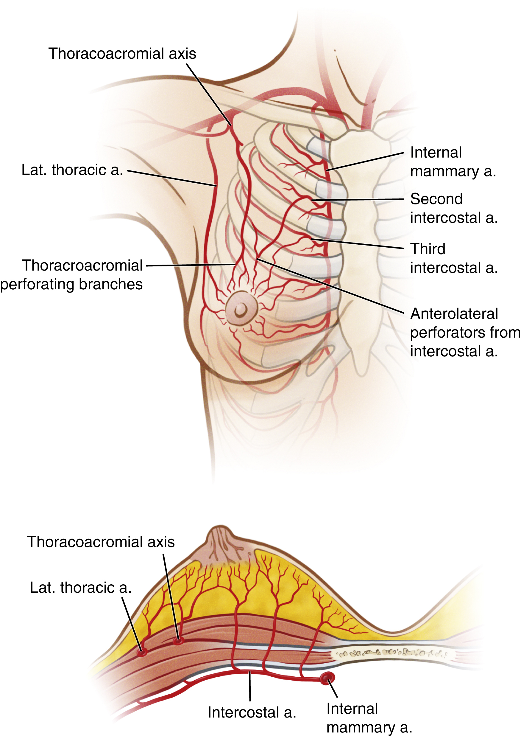 Breast vascular anatomy. a, Artery; lat, lateral.