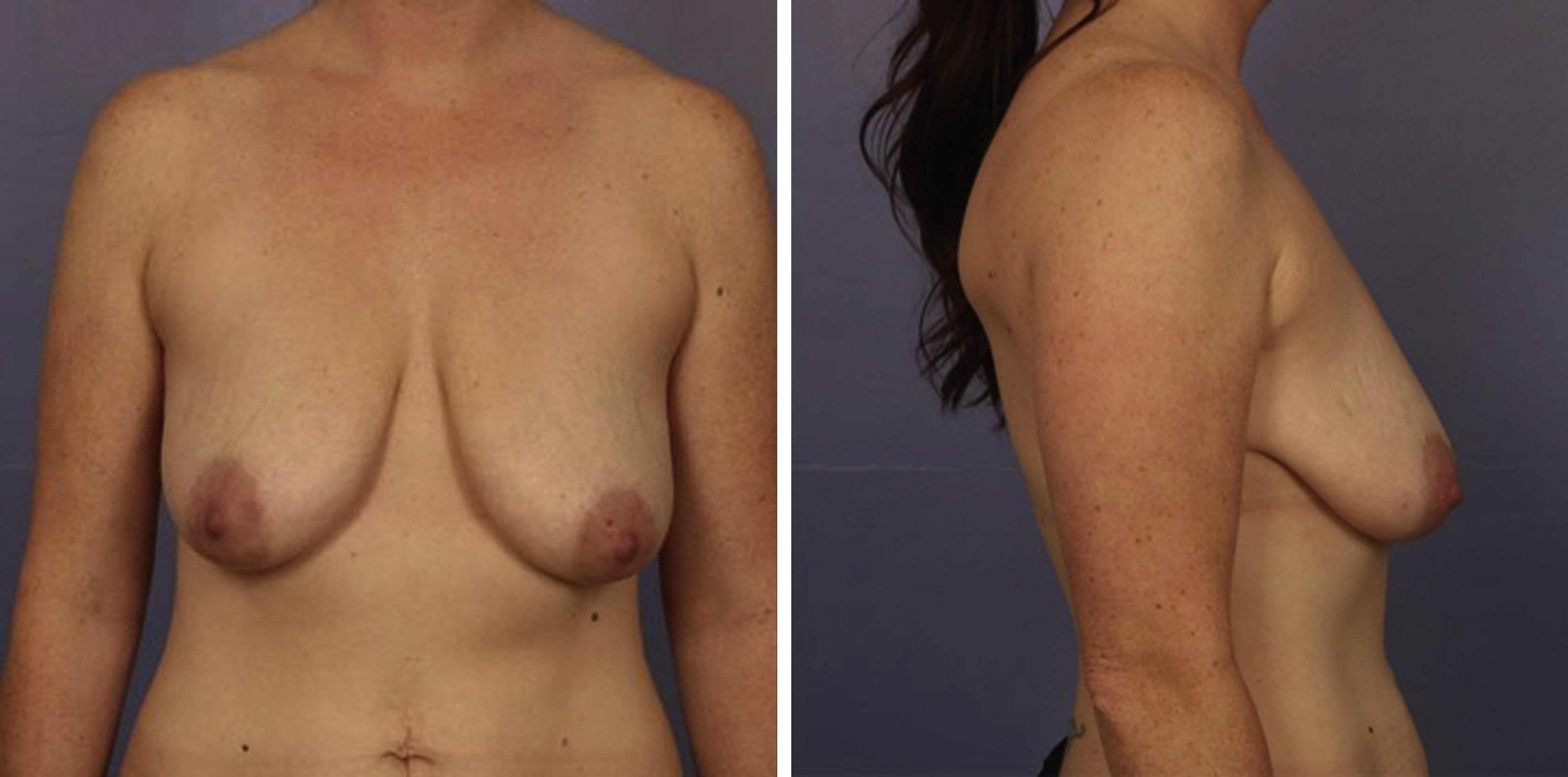 Ideal candidate for two stage augmentation mastopexy because of the long distance from native nipple position to desired nipple position.
