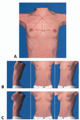 The authors use the VECTRA 3D imaging and simulation system for all patients interested in breast augmentation. The device takes a 3D photograph that can then be visualized in the monitor, with the addition of breast measurements (FIG 2A,B).