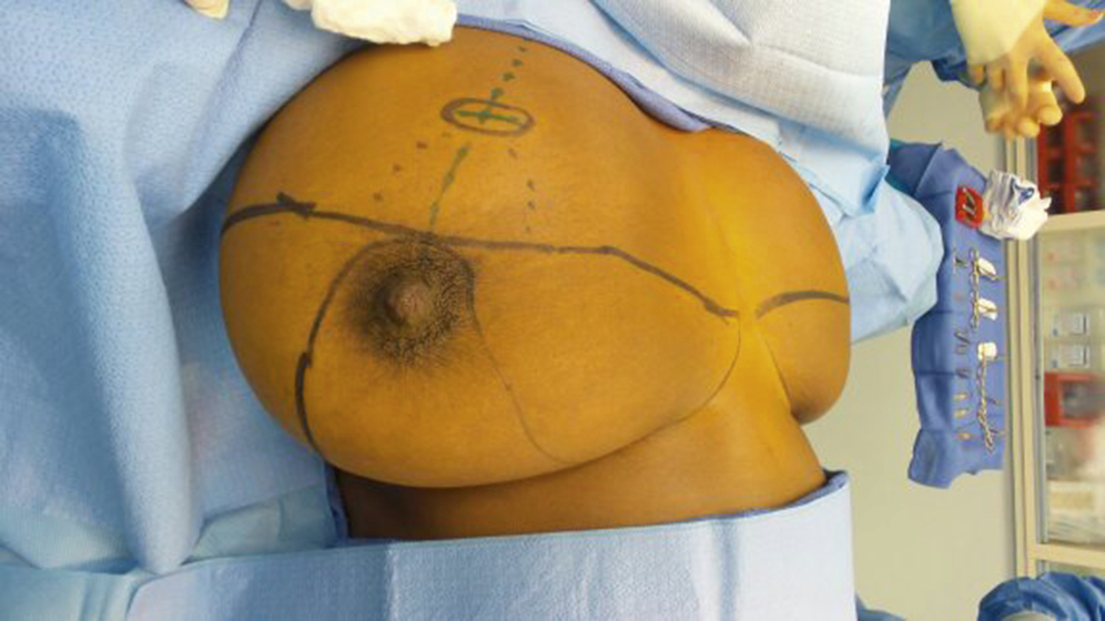 Breast reduction surgery is not only about improving the quality of life of women with the symptoms of macromastia but also improving the patient’s perception of her own image. Although it is thought by surgeons that the horizontal scar is the scar that bothers most patients, when 66 prospective patients desiring reduction were asked to rate line drawings and postoperative photographs of all three reduction techniques (Wise pattern, vertical, and no vertical scar), the no-vertical-scar operation was significantly preferred by the prospective patients. In addition to removing the vertical limb of the T scar, this procedure does not result in the disfiguring pull of the vertical limb on the shape of the new areola and significantly reduces the healing complications of the inferior T connection on a standard Wise pattern. The no-vertical-scar technique was brought to our attention by Passot and later re-popularized by Lalonde and Nagy.