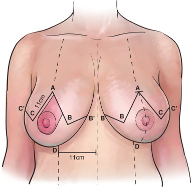 Preoperative markings using the Wise pattern ( Fig. 26.2 )