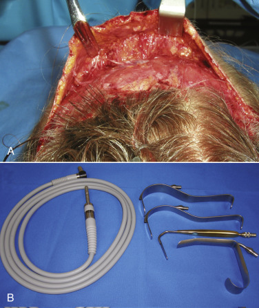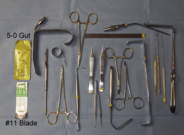 The instrumentation for TFSBFL is minimal and similar to facelift surgery ( Fig. 4.16 ). Most commonly used instruments include: