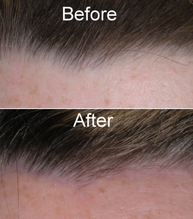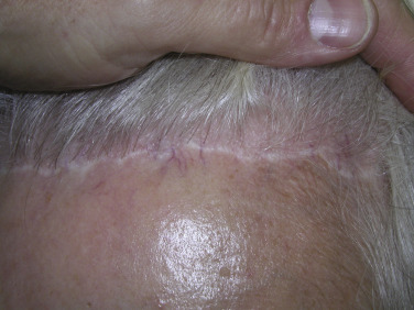 As with any surgical procedure, a learning curve is associated with this technique but when mastered, the postoperative scar and hairline can be virtually undetectable ( Fig. 4.32 ).