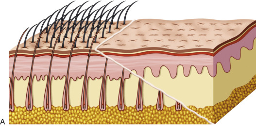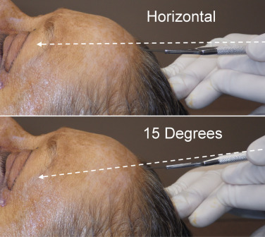 This extreme bevel has numerous functions. First, it allows the angled transection of hair shafts and follicles, which encourages hair regrowth through the scar. Second, this extreme bevel produces a very thin skin incision edge. Whereas an incision made perpendicular to the skin surface will produce the thickest skin edges, the more angled the scalpel is held, the thinner the skin flap edges will be. This very thin epidermal/dermal interface contributes to the excellent aesthetics of this type of skin incision. This thin interface also makes it easier for the underlying hair follicles to grow through the thin flap. When the surgeon appreciates these characteristics and can predictably perform this incision, repeatable outcomes are accomplished with this approach.