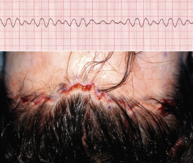 After experimenting with all the common geometric incision patterns, experience has shown that a random, irregular, undulating incision pattern produces the best postoperative scar. As stated earlier, this incision is made by using the scalpel at about a 10–20 degree angle from horizontal in a reciprocating manner like filleting a fish. The pattern is basically irregular and reminiscent of ventricular fibrillation on an electrocardiogram ( Fig. 4.28 ). The incision pattern and the angle of the cut are both critical factors in the success of this technique.
