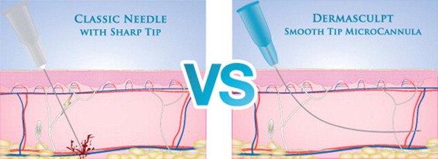 The concept of using cannulas for filling the face is not an entirely new one, as it has been used in fat grafting with success. Similar to fat-injection cannulas, they possess a blunt tip and a side port near the tip. In contrast to fat-injection cannulas, they are flexible, which allows a greater ability to fill the varying contours of the facial anatomy. The main advantages of these cannulas over hypodermic needles are: