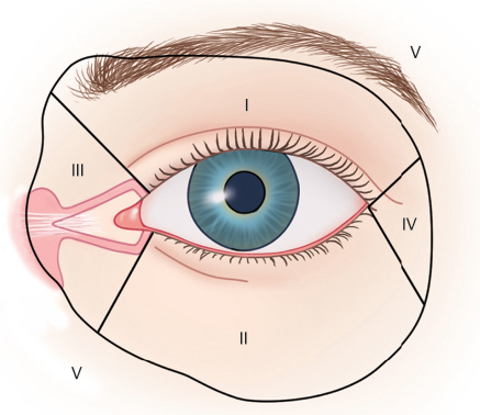 • Divide the periocular region into “zones” (Fig. 10.1)