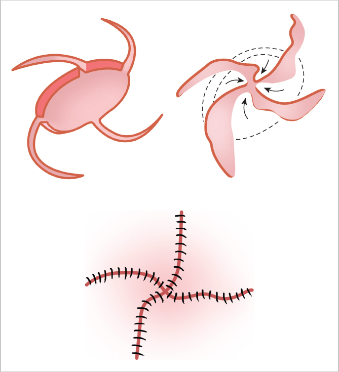Fig. 52.2 Pinwheel flaps for closure of a circular defect.