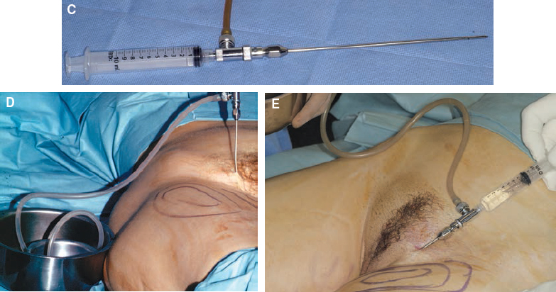 Propofol or general anesthesia is preferred for removal of larger volumes or when multiple sites are used. For hemostasis, Ringer’s lactate solution in a concentration of 1:400,000 epinephrine is also infiltrated in a ratio of 1 ml of solution for each cubic centimeter of fat harvested using a harvesting cannula.