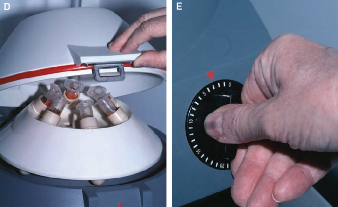 The lid on the centrifuge is then closed and locked by the circulating nurse, and the timer is set. Because the timers on centrifuges vary in reliability, it is best to check the accuracy of the timer.