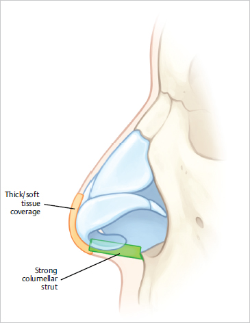 Fig. 18.1 A strong columellar strut is often required to establish and maintain proper tip position and projection. This will also allow counterbalance against the often thick skin or soft-tissue coverage.