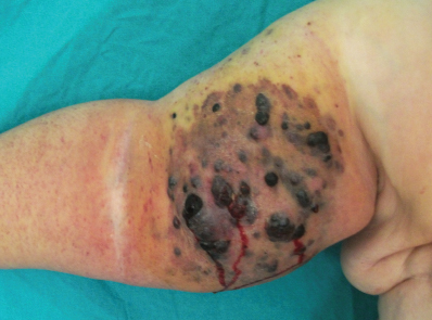 FIG. 21-1 A patient with postmastectomy lymphedema with Stewart-Treves syndrome.
