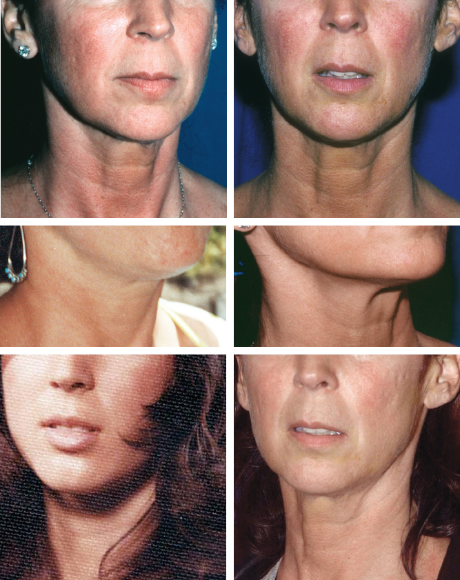 Photographs of the patient at a younger age are almost always revealing. In these photographs, the transverse cervical crease is present in the younger photo, but as the woman aged, this became more prominent and could be accentuated by a facelift.