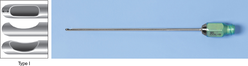 A blunt 17-gauge Coleman type I cannula is used for placement to avoid damage to underlying structures, particularly the neck veins. This blunt infiltration cannula is completely capped on the tip with a lip that extends 180 degrees over a solitary distal aperture. For fat placement into the neck I use both straight and curved cannulas that are 7 or 9 cm long with a 17-gauge lumen.