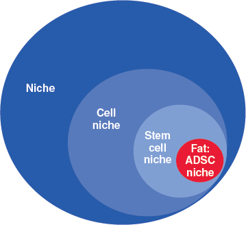 Today this debate has evolved into an inquiry about the role of ADSCs, their survival, and the extent and modality of their involvement in regenerative processes. To answer these questions, we must also consider the complex relationships that ADSCs establish with all the external factors, physiologic (before transplant) or ectopic (after transplant), that contribute to determining their identity and fate—that is, the niche.
