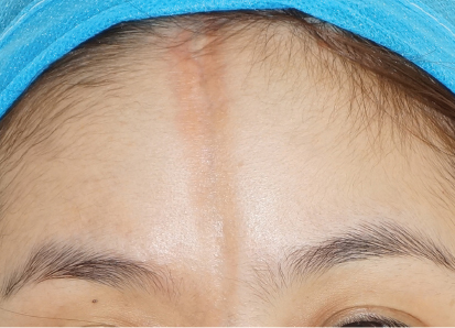 Patients with slight atrophy and some with moderate atrophy can be successfully treated with fat grafting only. Those with severe or partial moderate atrophy may have involvement of hair, eyebrows, or teeth, which cannot be corrected with fat grafting. For severely affected patients with alopecia, we recommend reconstruction with a soft tissue expander. The expander can be embedded under the scalp during the same procedure in which fat grafting is performed. After 3 to 6 months of tissue expansion, the second fat grafting procedure can be done and the tissue expander removed as the alopecia is repaired. Patients with sparse eyebrows will have sunken arcus superciliaris (the supraorbital margin); these individuals will require hair transplantation 3 to 6 months after fat grafting, when the surviving fat can provide a more robust blood supply and nutrition to the hair follicles. The soft fat will provide better “soil” than atrophic skin attached to bone for “seeds” (hair follicles) to be implanted. 12 For male patients, if the eyebrow on the unaffected side is very full and bushy, a free scalp transplantation to replace the alopecic eyebrow will be a better choice for reconstructing a new eyebrow.