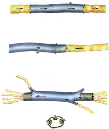 FIG. 33-2 The derivative MLVA and reconstructive MLVLA technique with the interposition of an autologous vein graft between the lymphatics above and below the obstacle to the lymph flow.