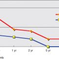 In our series, compared with preoperative conditions, all patients obtained significant reductions in excess limb volume of more than 85%, with an average of 70% as measured by limb water volumetry and circumference. These results were stable over an average of 10 years of followup. Outcomes improved with earlier microsurgical intervention because of no or minimal fibrosclerotic tissue changes in the lymph vessel walls and surrounding tissues. More than 85% of patients with earlier stages of disease (stages 1 or 2A and 2B) progressively stopped using conservative therapies over the follow-up period (Fig. 33-5). Forty-three percent of patients with more advanced lymphedema (stages 3A and 3B) decreased the frequency of physical therapy in the long term (Fig. 33-6). Infective rates, particularly lymphangitis, cellulitis, and erysipelas, dropped by 91% compared with preoperative conditions.
