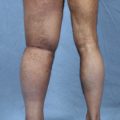 It is possible to perform multiple lymphaticovenous anastomoses at the same time; the most important requirement is that the vein branch be patent. Duplex scanning is performed in all patients to identify any venous disorders that may contribute to the edema. In most patients, it is possible to correct these venous dysfunctions at the same time as the microsurgery. This is done by performing procedures, such as valvuloplasty, for venous insufficiency with 6-0 nylon sutures. In a few cases, venous disease is an indication for performing a venous graft between the lymphatic collectors above and below the site of lymphatic obstruction, because the valvular incompetence of the diseased veins compromises the efficacy of the anastomoses if MLVAs were performed instead. This venous bridge type of graft is called a lymphaticvenouslymphatic anastomosis. Competent venous segments are harvested from the same operative site or can be taken from the forearm (usually the cephalic vein). The length of the grafted vein section varies from 7 to 15 cm, as needed. It is essential to gather several lymphatic collectors to join to the distal end of the vein to ensure that the vein segment is filled with sufficient lymph to avoid closure from subsequent fibrosis. The competent valves of the vein segment are vital to direct the flow of lymph in the correct direction and to avoid gravitational backflow or reflux. As with the lymphaticovenous anastomosis, the lymphatic collectors are directly introduced into the vein cut ends by means of a U-shaped stitch, which is then stabilized with additional peripheral stitches and ultimately removed as described previously.