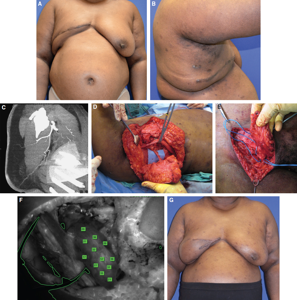 The treatment for breast cancer can include a wide variety of surgical options, including lumpectomy, partial mastectomy, mastectomy, and any degree of axillary lymph node sampling. These procedures can result in both functional and cosmetic deformities requiring reconstruction. There are various options for autologous breast reconstruction, which are tailored to the specific defect. Reconstruction of the axilla may be indicated if the patient develops lymphedema of the upper extremity, which occurs in up to 42% of patients after lymphatic dissection during surgery for breast cancer. 1 The vascularized lymph node transfer (VLNT) is an effective way to treat postoperative lymphedema by reconstructing damaged lymphatic anatomy. 2 – 4 VLNT is a microsurgical free tissue transfer that transplants healthy lymph nodes to the area where lymph nodes have been either removed or traumatized. For patients who have lymphedema and need breast reconstruction, these two reconstructive operations can be combined. Microsurgical (free flap) autologous breast reconstruction with simultaneous lymph node transfer as part of the breast flap has been described. 2