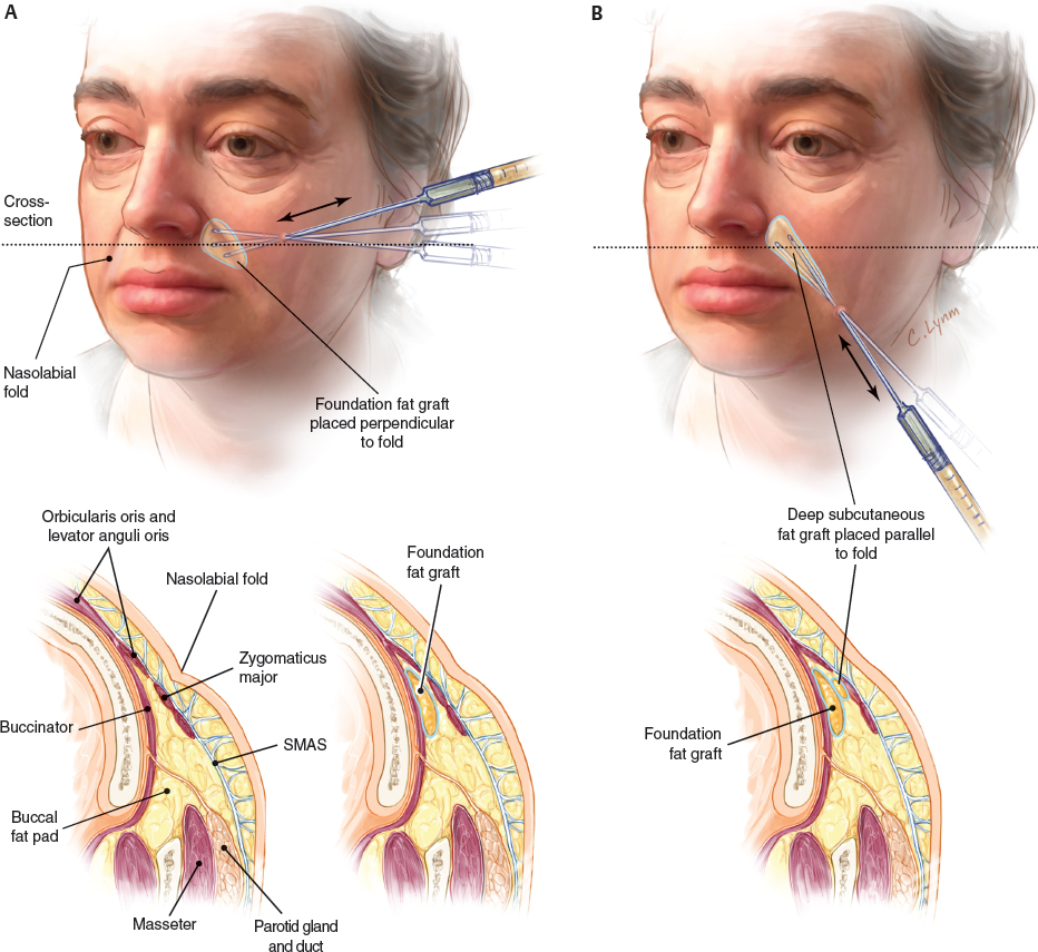 The average injected volumes are 1 to 3 cc of microfat per side. Undercorrection is preferable to overcorrection in this area. Effective, natural, and long-term correction is expected with this technique.