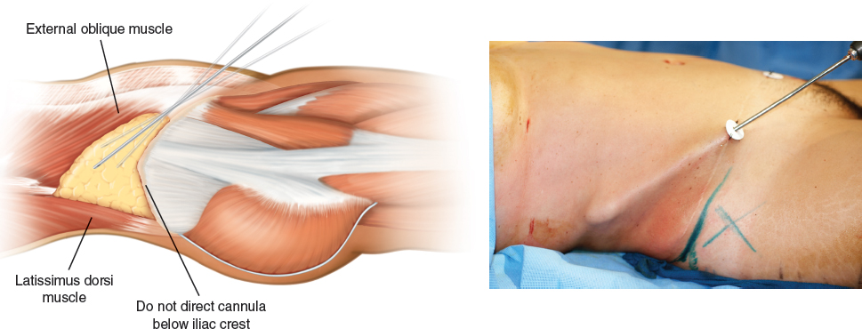 To truly contour this fat pad zone, the surgeon must approach it not only with the patient in the lateral decubitus position but also in the prone position. In the past, I tried addressing the waistline when the patient was supine and prone, but the contour was never really as refined as desired. It looked good while the patient was on the table, but the results 3 to 6 months later left something to be desired.