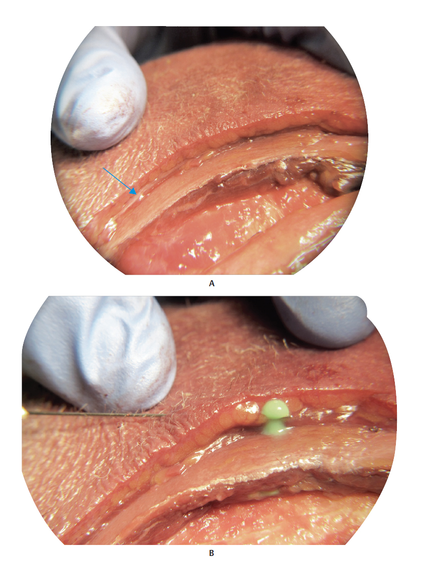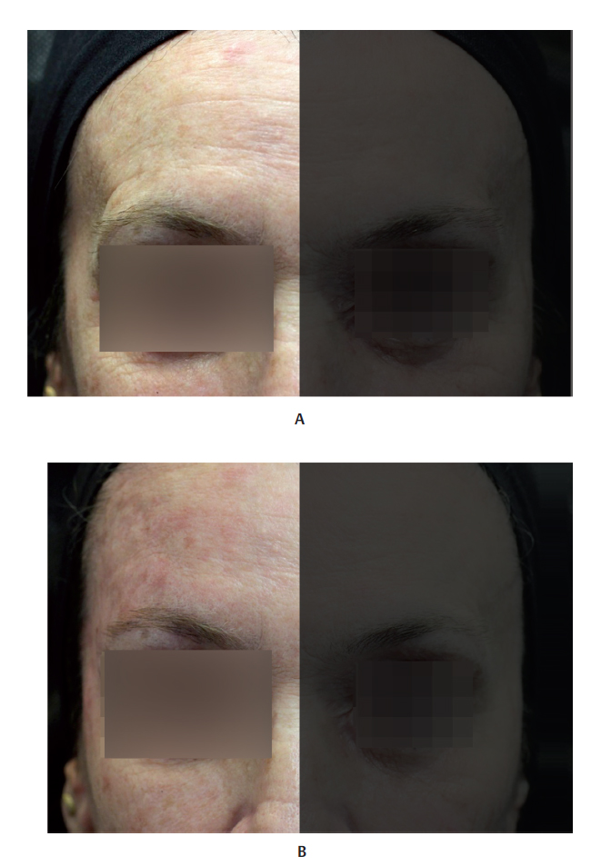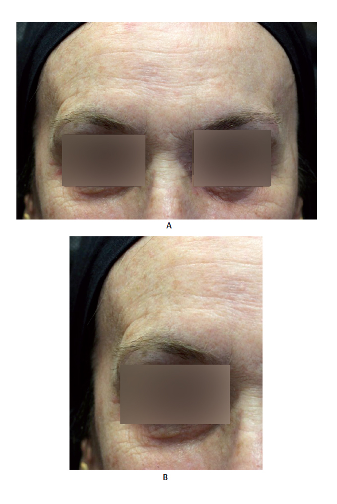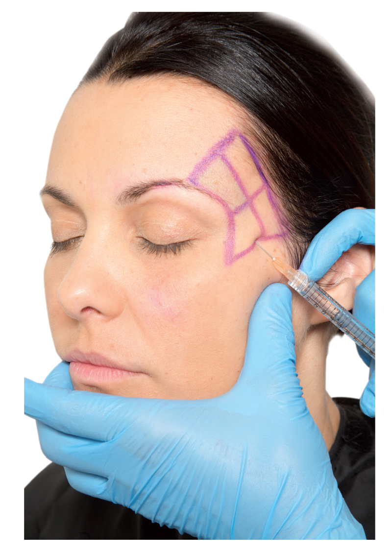 Treating the temporal region is a challenge because the local skin is thin and tends to form irregularities after injection. Lambros 1 presented an alternative technique for filling the subcutaneous plane with HA diluted in physiological saline solution (PS) at a ratio of 2:1 (PS to HA). With the absorption of PS, HA is distributed more uniformly. This dilution technique, and inserting HA at this site, is considered off -label.