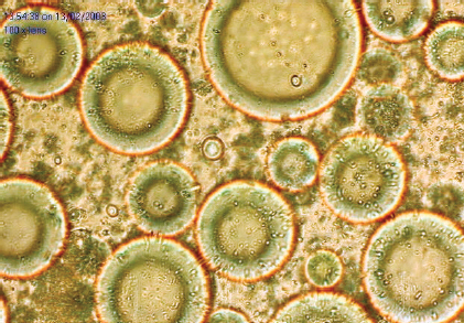 The normal appearance of intact viable adipocytes is shown. This cell counting technique can be difficult in adipocytes because of the scant cytoplasm in mature adipocytes. 9 In addition, since a cell isolation procedure is used in the test, it may not accurately reflect the viability of fat grafts in the intact tissue, because isolation of adipocytes eliminates the stromal component surrounding the adipocytes. 10 Nevertheless, this test can provide meaningful information about the viability of fat grafts and can serve as a baseline test in determining the viability of fat grafts.