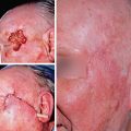 For very large medial cheek defects, a bilobed cervicofacial flap with the bilobe from postauricular skin can be used (Fig. 7.10 and Fig. 7.11). If there is not enough laxity to close the postauricular donor site, a full-thickness skin graft can be used to close the site.