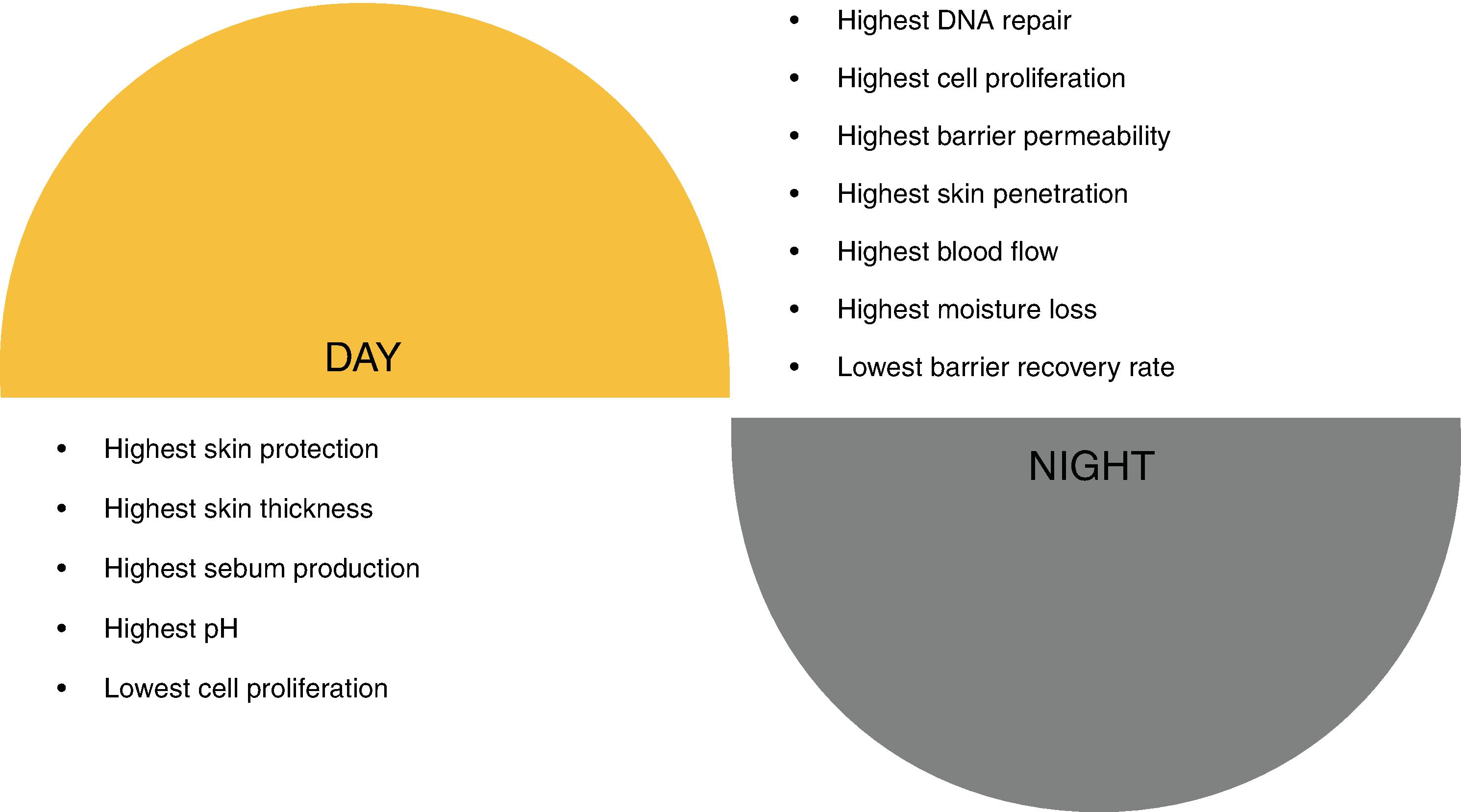 • During daytime, skin is in its lowest state of proliferation and is focused on preventing environmental damage.