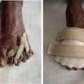 Atypical hand, now known as symbrachydactyly, is usually unilateral with the presence of digital nubbins and a more U-shaped cleft. The U-shaped cleft appearance is attributed to the absence of the index, long, and ring fingers from necrosis of mesenchymal tissue, with present metacarpals. Ogino classified this deformity on the basis of the grade of osseous syndactyly and polydactyly.
