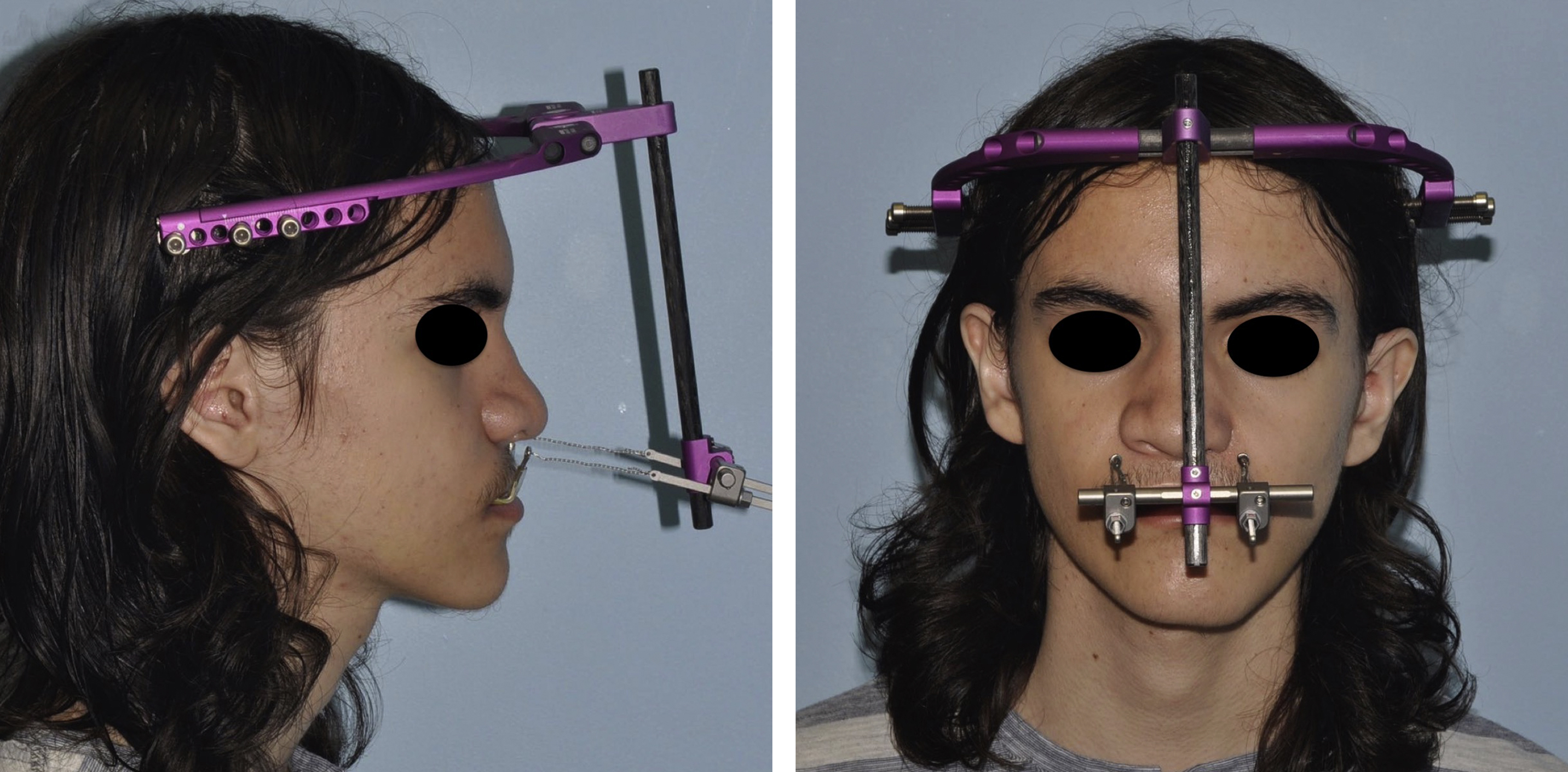 The main advantages of external maxillary distraction include large advancements and ease of vector control and adjustability during the activation process. The technique does not require a second surgical procedure for its removal. The requirement of an external halo and framework is its main disadvantage, although when properly utilized, it is an effective treatment option for otherwise challenging cases.