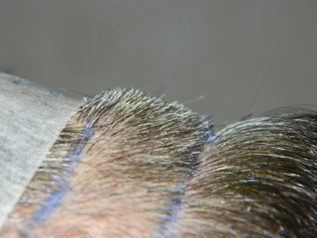 The basic principle of wound closure is to have no tension on the skin edges. The majority of the surgeons use a single-layer closure for a strip harvesting wound (with absorbable or nonabsorbable sutures or staples). There are a few surgeons who prefer a multilayer closure.5 There has been no study to advocate which technique is better in hair transplant surgery. The single-layer closure reduces the surgery time, decreases the exposure of wound surface, and somewhat lowers the cost of the surgery. This can avoid the problems of stitch-related issues, including lower chances of granuloma formation in response to the deep suture material, which in some patients can results in a hypertrophic scar formation. The deeper absorbable sutures get dissolved by the absorption, which may be a nidus for inflammation and thus induce hypertrophic scarring. In addition, some patients who have experienced both single- and double-layer closures state that the deep sutures are more uncomfortable after surgery. The basic aims of multilayer closure are two-fold: to decrease the dead space especially after harvesting a wider strip and to bring the whole flap margin into contact with the other flap margin, thereby reducing the tension on the skin edges.6