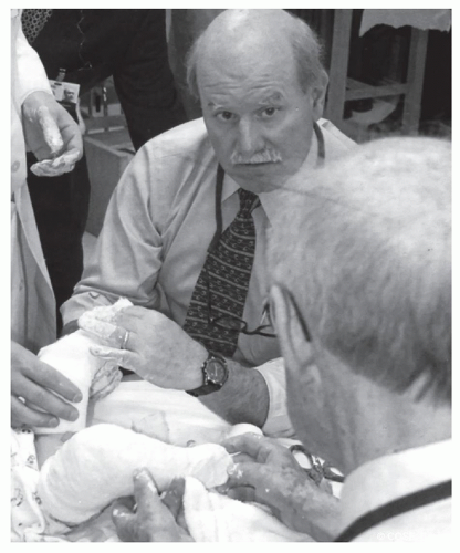 ![]() Figure 27-1 ▪ Dr Ponseti (foreground) instructing in the utilization of his clubfoot casting technique. We converted to Ponseti method as the primary treatment for clubfoot deformity in 1998. |