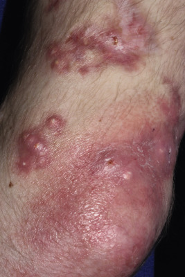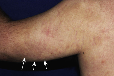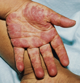 Other cutaneous features include palmar erythema and thickening, which can be mistaken for dermatitis and sometimes has so much hyperkeratosis and fissuring that it has been compared with a mechanic’s hand. A more generalized hyperkeratotic disorder that resembles pityriasis rubra pilaris, and generalized erythroderma with scaling, have also been described.