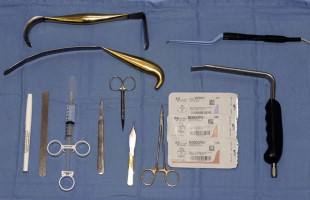 Instrumentation for breast augmentation revision cases is similar to primary cases. Spatula, retractor along with the double handle, lighted retractors and smoke evacuators are extremely helpful. 2-0 vicryl is used to set the IMF, 3-0 vicryl for a deep running closure and 4-0 monocryl for the subcuticular layer.