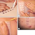 Bleaching creams are most effective when used on the face due to enhanced penetration through thin skin. Neck, chest, and forearm hyperpigmentation responds even more slowly to treatment due to the decreased penetration of the active ( Fig. 34.3 ). Since hydroquinone has been removed from the OTC market, many new botanically based bleaching creams have entered the cosmeceutical market. One such formulation contains hydroxyphenoxy propionic acid, ellagic acid, and salicylic acid formulation. The hydroxyphenoxy propionic acid decreases melanin production, the ellagic acid is an antioxidant, and the salicylic acid is a penetration enhancer.