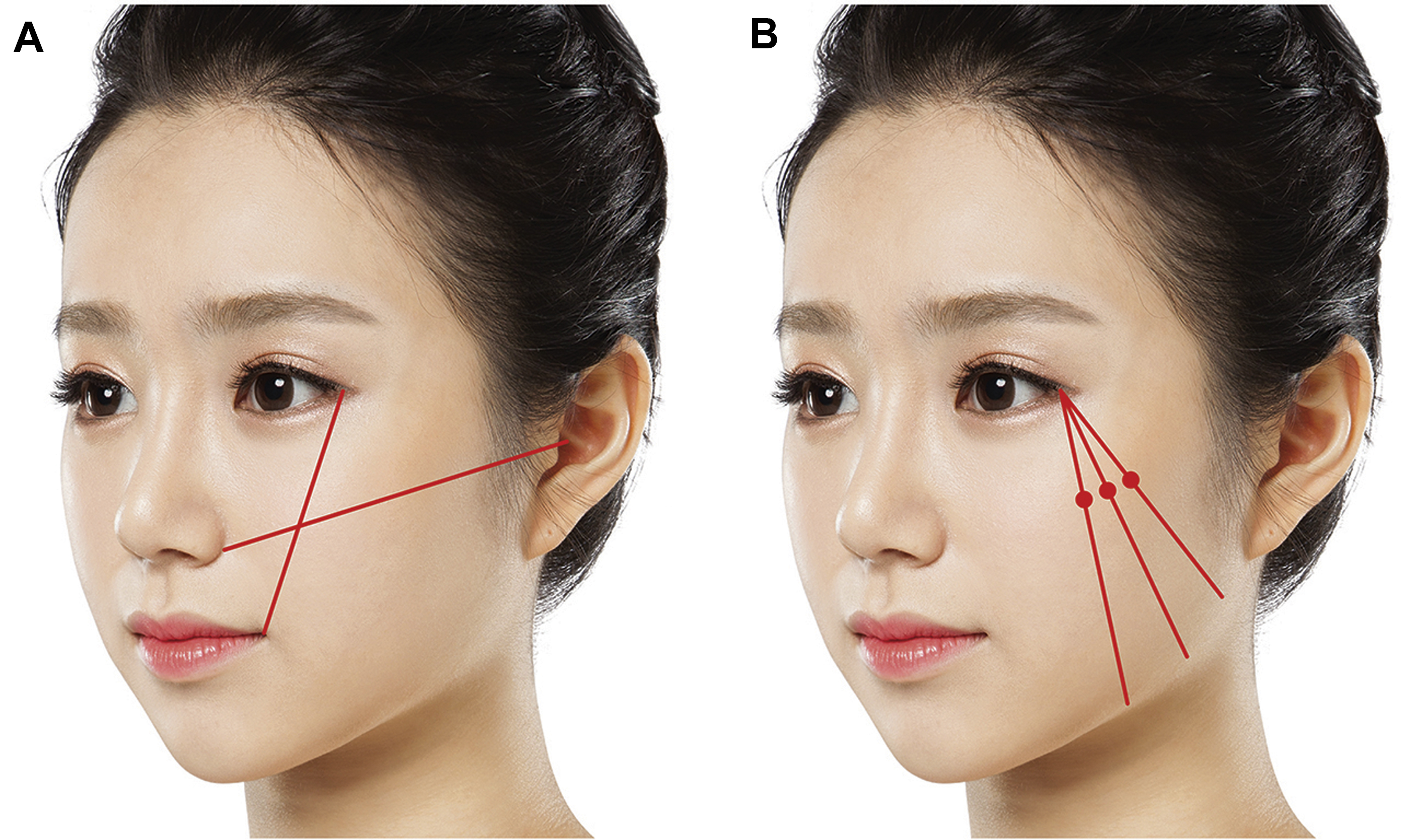 The ideal MMP point may vary among different ethnicities and patients’ needs; however, patients who desire zygoma reduction want the MMP to be medial to the lateral canthus in the horizontal dimension, and not too high or too close to the lateral canthus in the vertical dimension , ( Fig. 4 ).