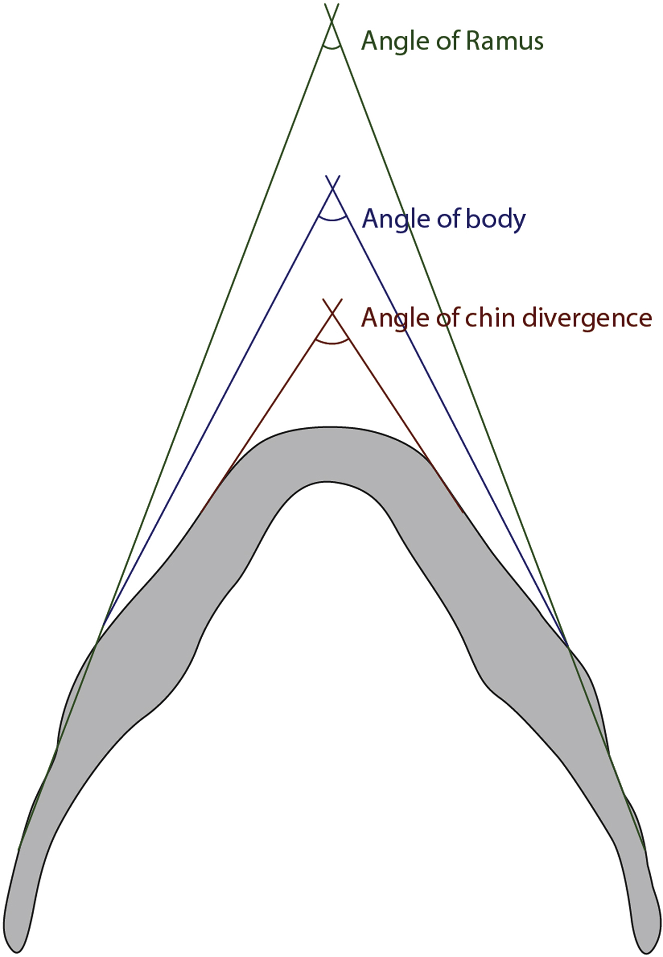 Transverse shape of the mandible can also be evaluated ( Fig. 6 ). The angle of divergence and convexity of the mandible are observed. In patients with an inward curled angle with convex transverse shape, sagittal resection at the body helps to reduce the width of the mandible more effectively.