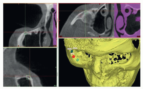 Preoperative 3D planning software that integrates the soft tissue and the underlying skeletal anatomy allows the simulated placement of screws into bone to determine ideal vectors and locations of placement (FIG 3). These technologies can be merged with intraoperative stereotactic guidance for particularly challenging cases to ensure optimal placement.6 At our center, we prefer to use a computer-generated guide for precise implant placement7 (FIG 4).