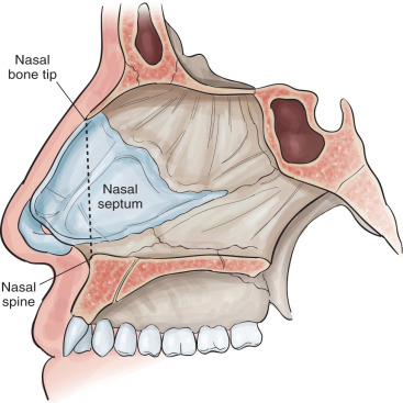 • Middle third—the cartilaginous vault may be similarly described but is more prone to asymmetry or collapse from loss of height of the septum.