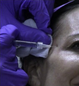 The temporal area is fairly fixed and does not change or move significantly with head position; thus, proper position depends on comfort and ease of injection. This is in contrast with the midface and jawline, because these units shift depending on head position from vertical to supine.