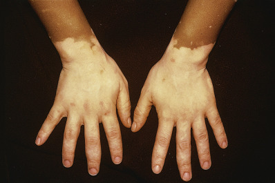 Scales are dry or greasy, laminated masses of keratin. The body ordinarily is constantly shedding imperceptible tiny, thin fragments of stratum corneum. When the formation of epidermal cells is rapid or the process of normal keratinization is disturbed, pathologic exfoliation results, producing scales. These scales vary in size; some are fine, delicate, and branny, as in tinea versicolor, whereas others are coarser, as in eczema and ichthyosis, and still others are stratified, as in psoriasis. Scales vary in color from white-gray to yellow or brown from the admixture of dirt or melanin. Occasionally, they have a silvery sheen from trapping of air between their layers; these are micaceous scales, characteristic of psoriasis. When scaling occurs, it usually suggests a pathologic process in the epidermis, and parakeratosis is often present histologically.
