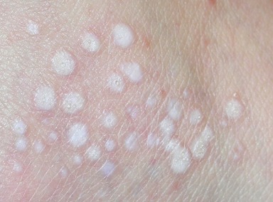 Guttate white papules are characteristic of early lichen sclerosus.