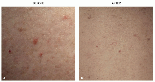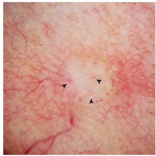 ![]() FIGURE 12.2.2 A close-up photograph of an Unna nevus. Note the presence of milia-like cysts and comedo-like openings on the surface of the nevus. |
